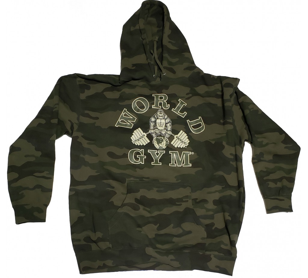 Ένα πουλόβερ hoodie γυμναστήριο με τον γορίλλα λογότυπο World Gym. Ευρύχωρο uni-τσέπης. Η Παγκόσμια Gym hoodie έχει ένα ελαστικό κάτω και μανσέτες συν ένα κορδόνι περίσφιξης με χάλυβα βλέφαρα πριτσίνια. Η Μαύρη μυών hoodie είναι 80/20 Η Χαρ γυμναστήριο hoodie είναι 60/40 βαμβάκι / πολυ.