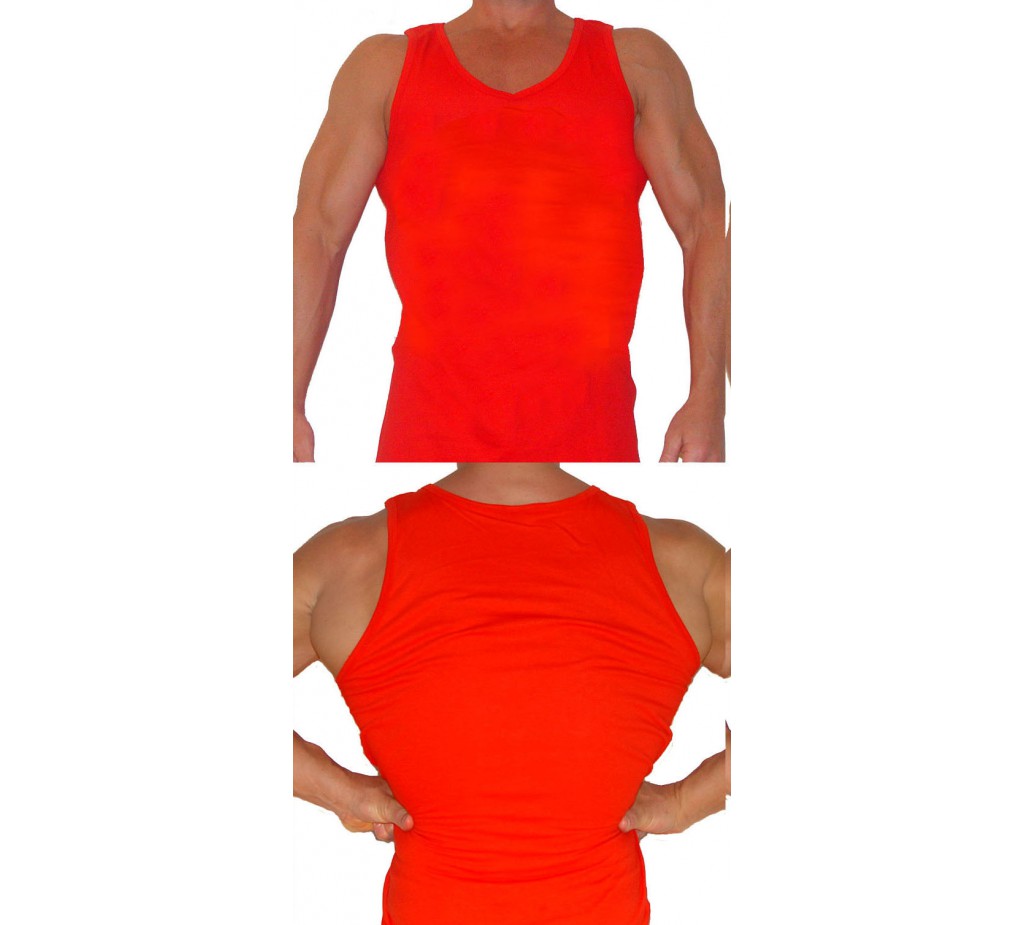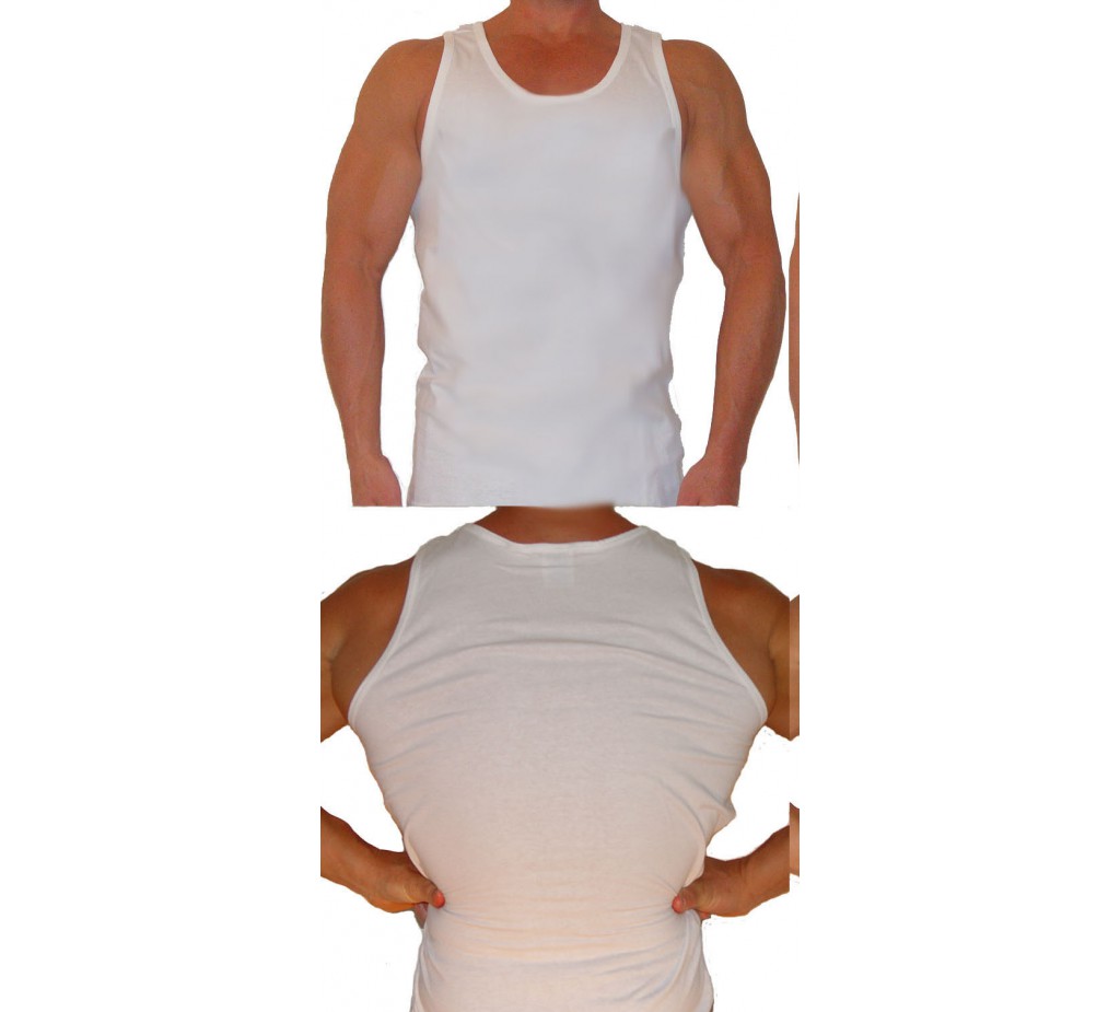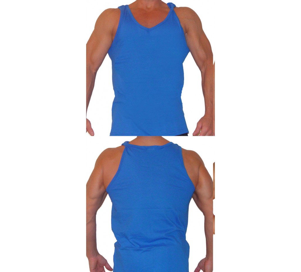 Üres tartály tetején sportos stílus egy teljes vágott vissza. A fehér tank tetején a legnépszerűbb. Powerhouse, világ-és Golds Gym használják ugyanezt a férfi üres tank tetején a képernyő-print logók. Szintén piros, kék, arany, szürke és fekete ujjatlan felső szín 2XL + $ 2